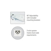 The max run of Alpha LED Light Bar is up to 400 watts of linked fixtures. Each LED Dimmable Linear Light Bar includes 2 adjustable angle brackets (0 to 90 degrees), and one end-to-end connector for seamless end-to-end transitions. It is UL listed to ensure the durability and safety of its lifespan. Order power feed cord and accessories separately for easy plug-n-play install.